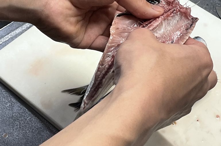 魚を捌きたいとう高校生