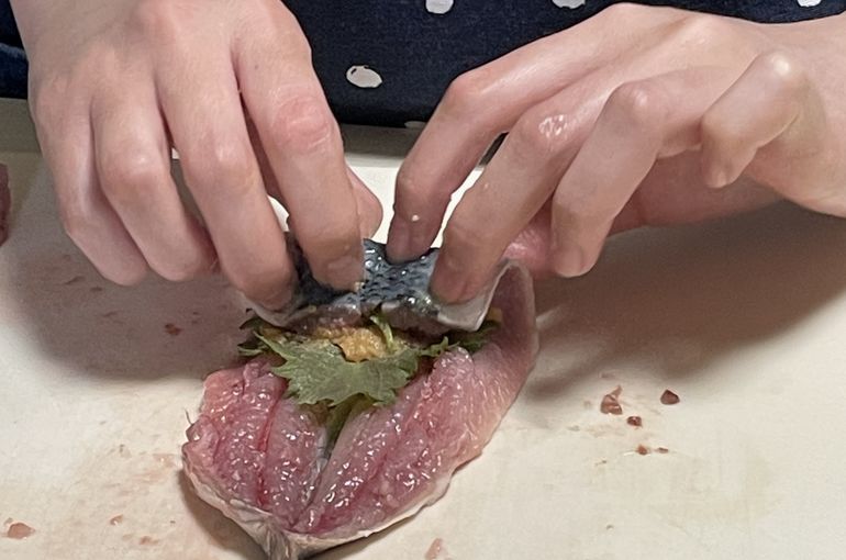 練馬の子ども料理教室 高校生がいわしを捌きました