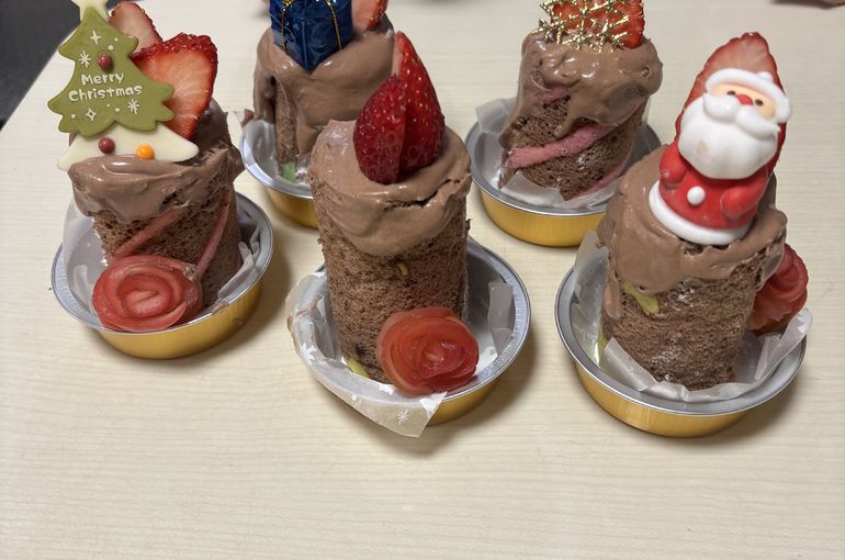ろうそくに見立てたロールケーキに